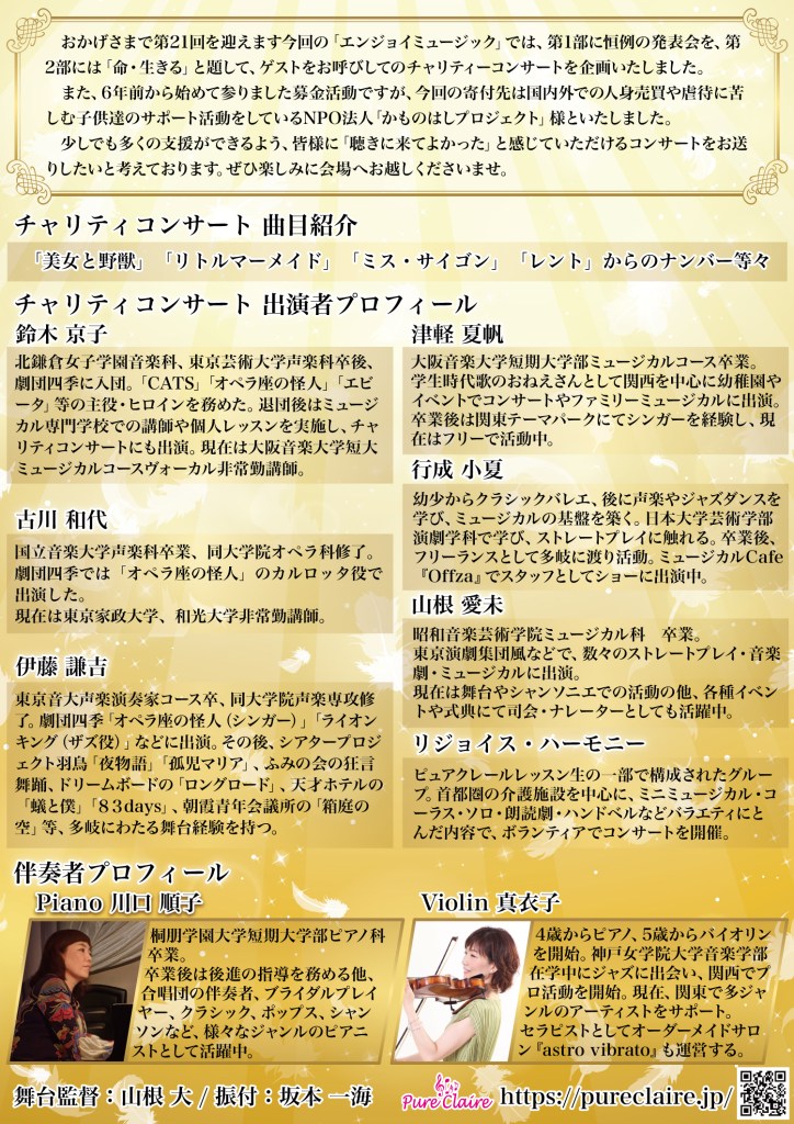 ピュアクレール Enjoy Music Vol.21 チャリティコンサート&発表会